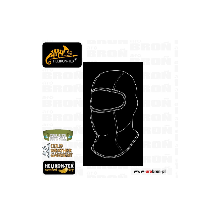 Kominiarka Helikon Cold Weather Balaclava - to wersja zimowa koniniarki która została zaprojektowana specjalnie do noszenia w niskich temparaturach. Użyte w produkcji materiały to 95% Poliestru, 5% Spandexu oraz polar grid Helikon-Tex® Comfort Dry. Dzięki temu cała głowa i twarz użytkownika jest ogrzewana a nadmiar wilgoci odprowadzany jest na zwenątrz. Dzieki wykorzystaniu Spandexu kominiarka ma uniwersalny rozmiar i pasuje na każdą głową a krój pozwala na odsłonięcie lub