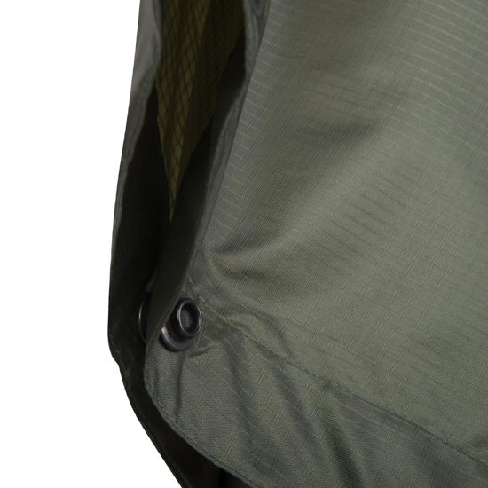 Peleryna przeciwdeszczowa (ponczo), wykonana z Poliestru typu RipStop - lekkiego, wodoodpornego i szybko schnącego materiału. Peleryna jest bardzo dobrze wykonana i niezawodna - ma podklejone szwy oraz sznurkowy ściągacz w kapturze,