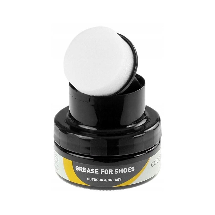 Tłuszcz do skóry licowej Coccine Grease BLACK- preparat natłuszczający, zmiękczający, ochronny, przeznaczony do obuwia trekingowego, jesienno-zimowego oraz zimowego. Zawiera naturalne tłuszcze, które przeciwdziałają nasiąkaniu wodą oraz chronią przed wysuszeniem skóry obuwia, szczególnie podczas kontaktu z solą i śniegiem. Tłuszcz wnika głęboko w skórę co daje lepszą ochronę. Impregnat podnosi elastyczność i wytrzymałość obuwia. Preparat chroni przed otarciem i zarysowaniem. Regularnie stosowany przedłuża żywotność skóry do 100%.