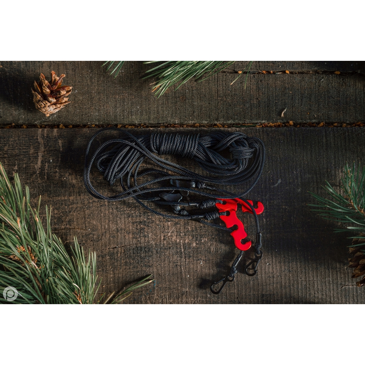 Linka Zawieszka do mocowania TARPA BLACK SILK - bardzo prosty, bezwęzłowy model linki, który przyśpieszy rozwieszanie naszego zadaszenia. Dobrze wiemy, przy niepewnej pogodzie, każda sekunda jest na wagę złota. 7 metrów cięciwy w zupełności wystarcza nawet przy większym rozstawie drzew.