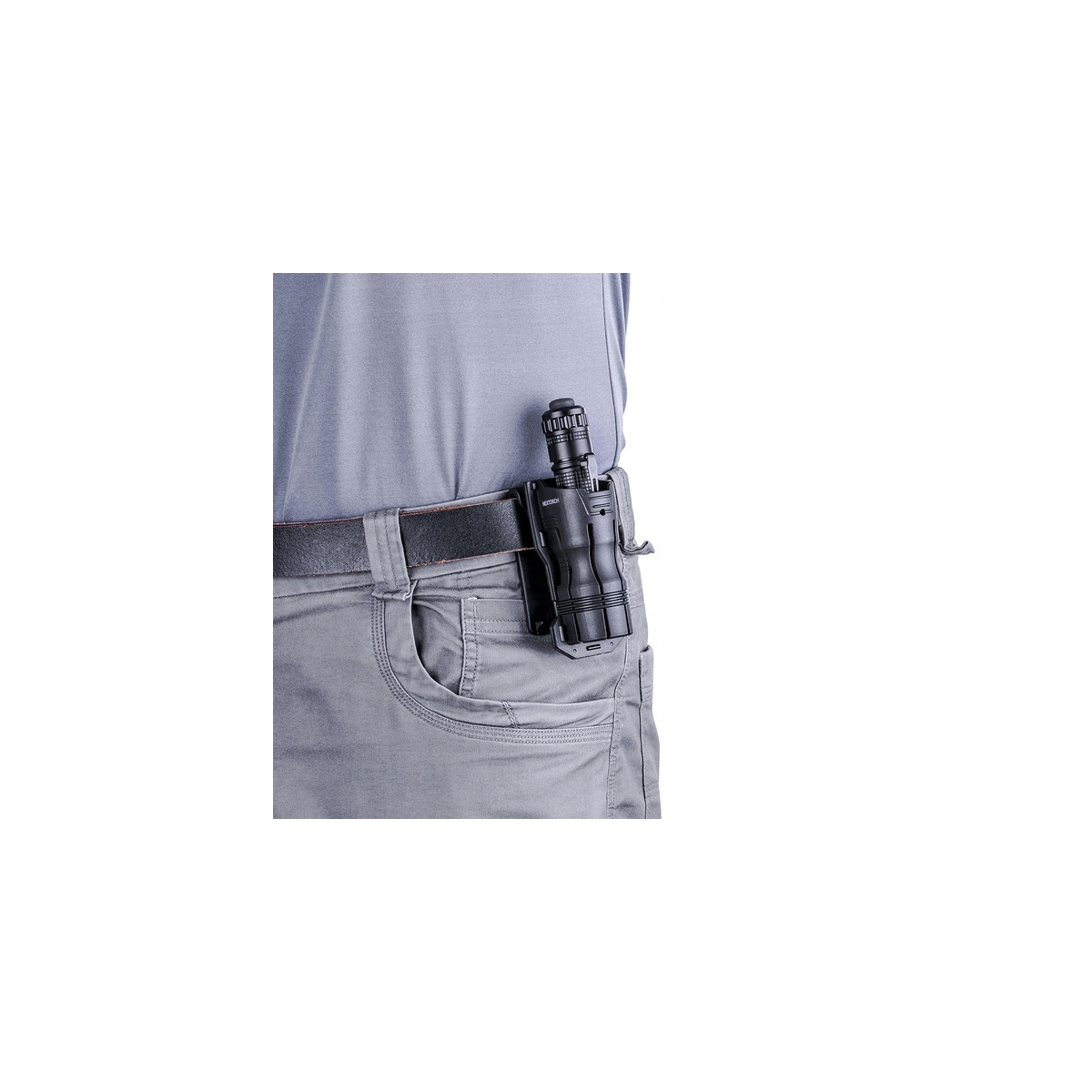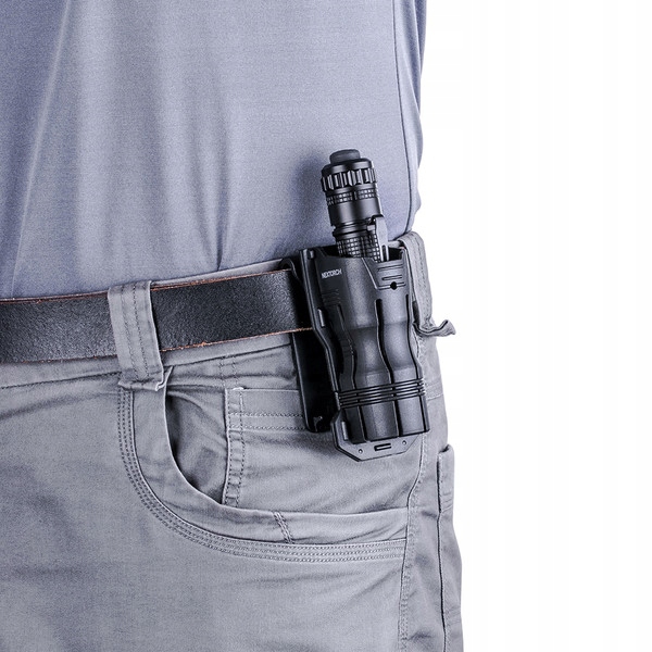 NEXTORCH kabura V6 - przeznaczona do latarek firmy NEXTORCH mocowana do paska. Zastosowany system obrotu 360° pozwala na dobranie odpowiedniego kąta ustawienia kabury dla użytkownika.