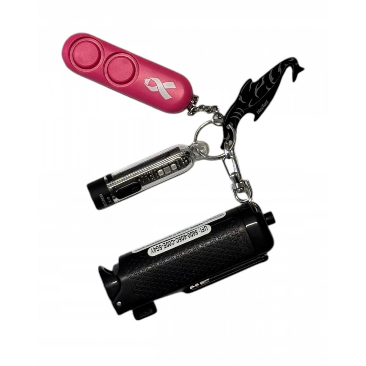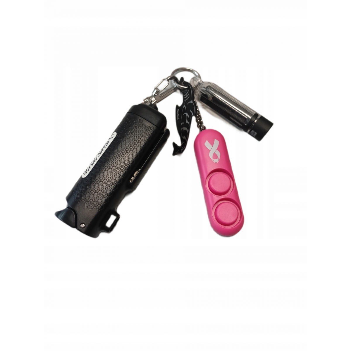 Brelok zestaw dla kobiety: gaz pieprzowy Sabre + alarm Sabre + latarka
