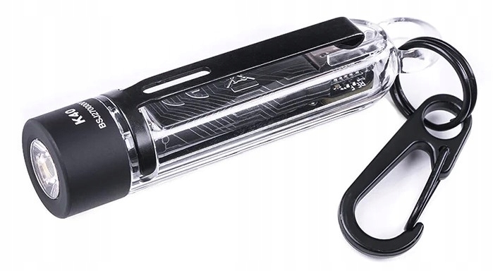 Latarka NEXTORCH K40 to mała, lekka latarka w formie breloczka. Wykonana z aluminium, odpornego na zarysowania oraz tworzywa sztucznego. Posiada karabińczyk, który umożliwia przyczepienia jej do kluczy czy plecaka. Wodoodporna i wstrząsoodporna obudowa posiada certyfikat IPX 4.