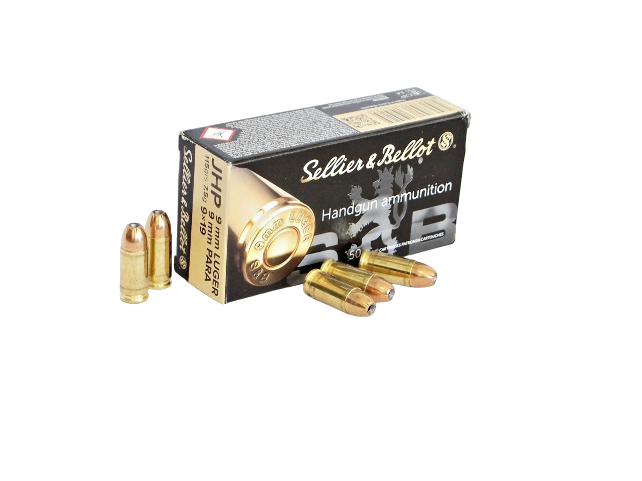 AMUNICJA 9X19 LUGER JHP CZESKA S&B SELLIER & BELLOT JHP 7.5G OPAKOWANIE 50SZT.