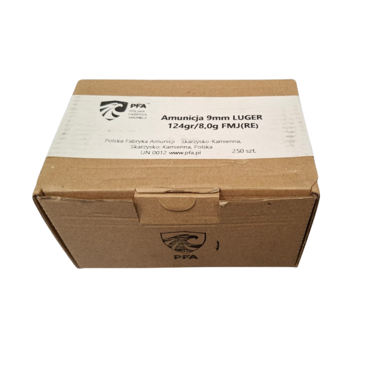 AMUNICJA 9x19 PFA POLSKA FABRYKA AMUNICJI FMJ 8g REELABOROWANA op.250