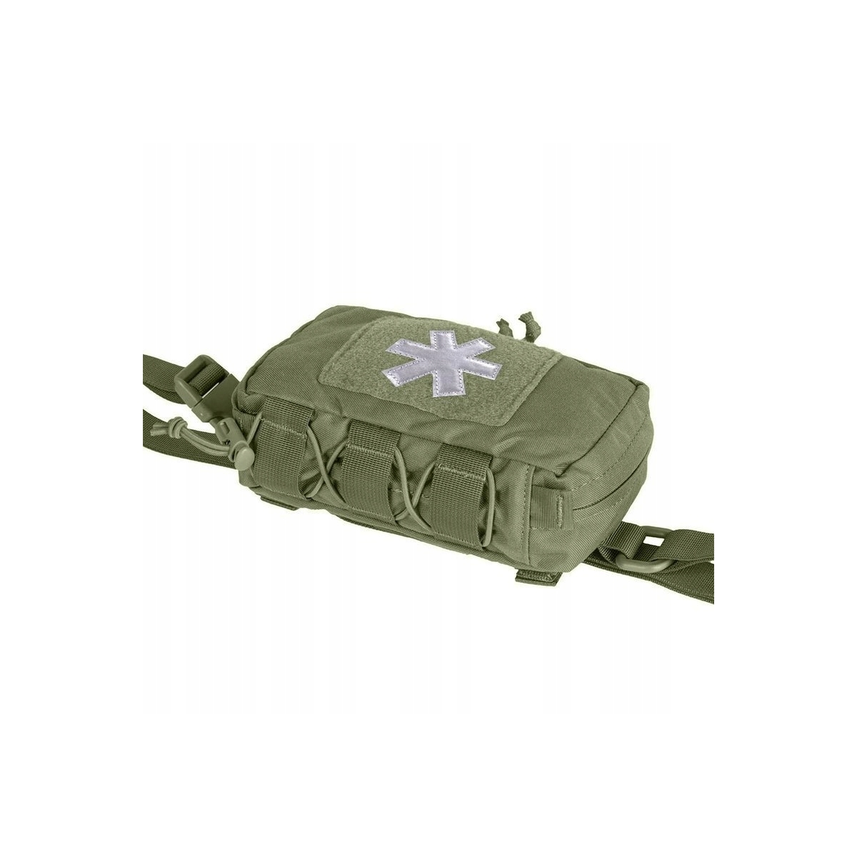 - Zewnętrzny panel Velcro® (100 x 75 mm) posiada odblaskowy krzyż paramedyczny.