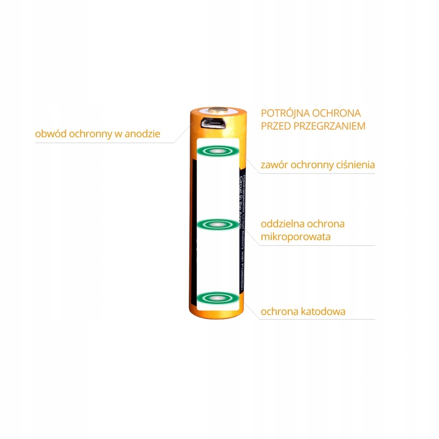 - katoda z zabezpieczeniem PTC (zabezpieczenie przeciwprzeciążeniowe).
