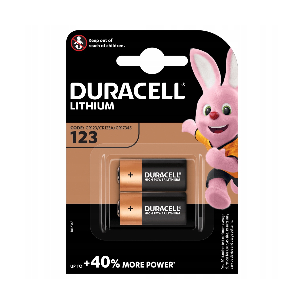 Bateria DURACELL LITHIUM CR123 - te wysokiej jakości baterie litowe charakteryzują się wysoką wydajnością w całym okresie żywotności nawet w trudnych warunkach. Baterie zapewniają dużą moc, dlatego nadają się do zasilania latarek, aparatów fotograficznych i kamer cyfrowych. W opakowaniu znajdują się dwie sztuki baterii o napięciu 3 V.