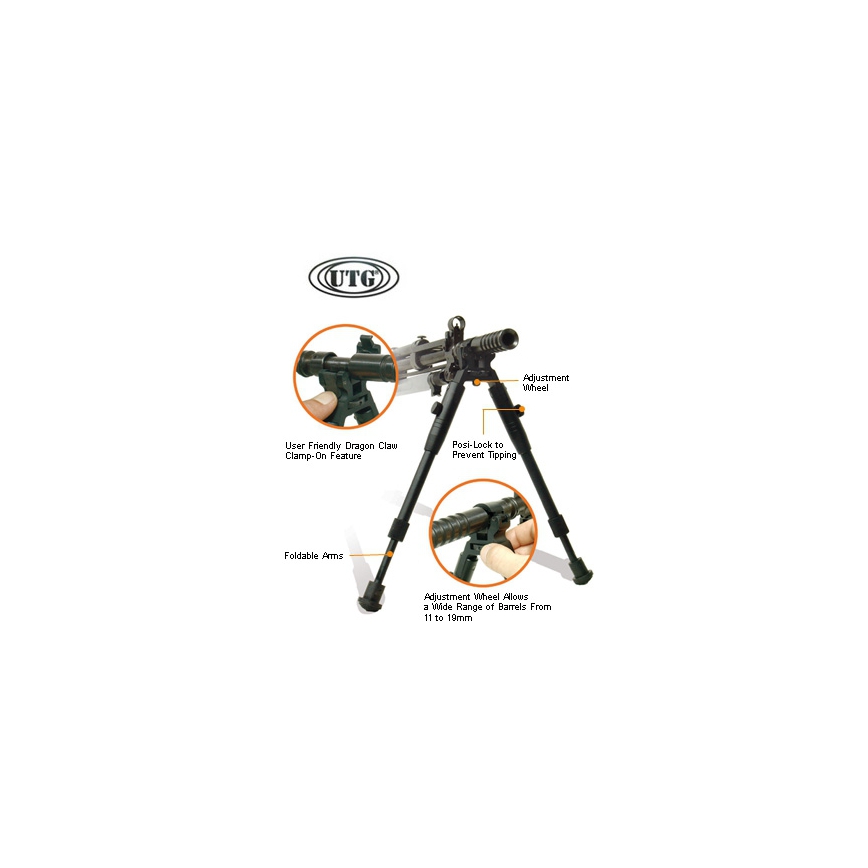 Bipod Leapers Dragon Claw - uniwersalny bipod renomowanej amerykańskiej firmy Leapers model TL-BP08S (Dragon Claw). Wykonany z najlepszej jakości lotniczych stopów aluminium. Wyposażony w gumowe podnóżki. Możliwość dopasowania do lufy (rozwarcie regulowane od 11 do 19 mm), nóżki sprężynowe.