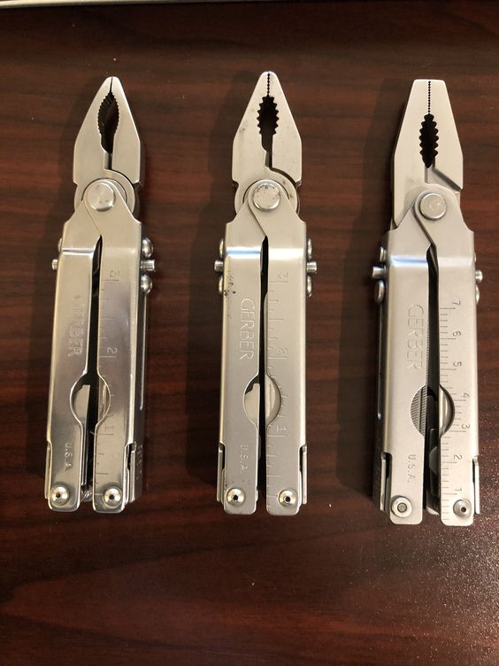 Pierwsze multitoole pojawiły się w trzech wariantach: dwóch różnych wydłużonych szczypiec oraz jednych skróconych - tzw. blunt.
