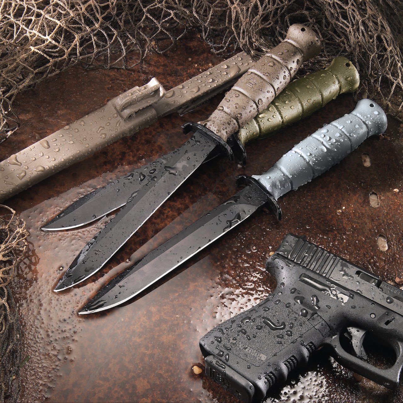 Polimer, z którego wykonana jest rękojeść, jest materiałem lekkim, ale jednocześnie bardzo wytrzymałym. Dzięki temu noże Glock są nie tylko solidne, ale również wygodne w użytkowaniu. Polimerowe rękojeści są ergonomicznie zaprojektowane, co zapewnia pewny chwyt nawet w trudnych warunkach.
