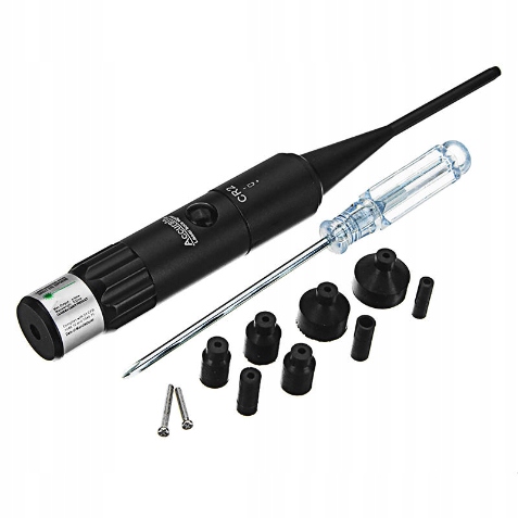 W ofercie naszego sklepu znajdziesz także laser służący do kalibracji lunet celowniczych. Urządzenie posiada w zestawie komplet nasadek, które pozwalają na umieszczenie lasera bezpośrednio w wylocie lufy broni. Następnie uruchamiamy go i patrząc poprzez kolimator lub lunetę regulujemy pozycję krzyża w taki sposób, by pokryła się bezpośrednio z laserem. Takie ustawienie pozwala na oszczędzanie amunicji, co jest ważne w przypadku broni palnej. Laser do kalibracji może też służyć jako urządzenie do zapamiętywania ustawienia lunety - np w przypadku kiedy mamy różne rodzaje optyki, stosowane naprzemiennie. Po przestrzeleniu danej lunety montujemy laser w lufie, a następnie za pomocą śrub regulacyjnych naprowadzamy plamkę na środek krzyża - musimy zapamiętać na jakiej odległości ustawiliśmy plamkę.