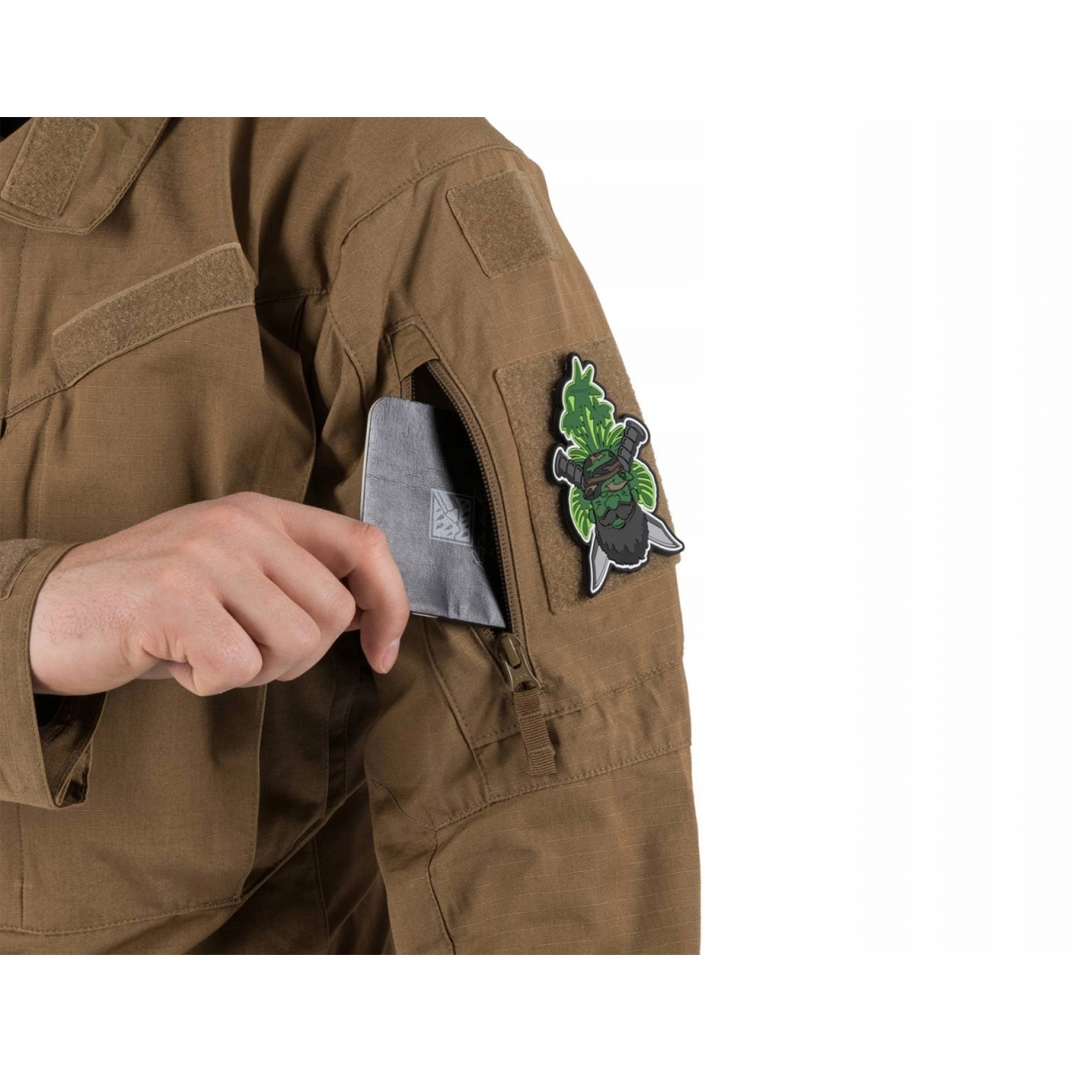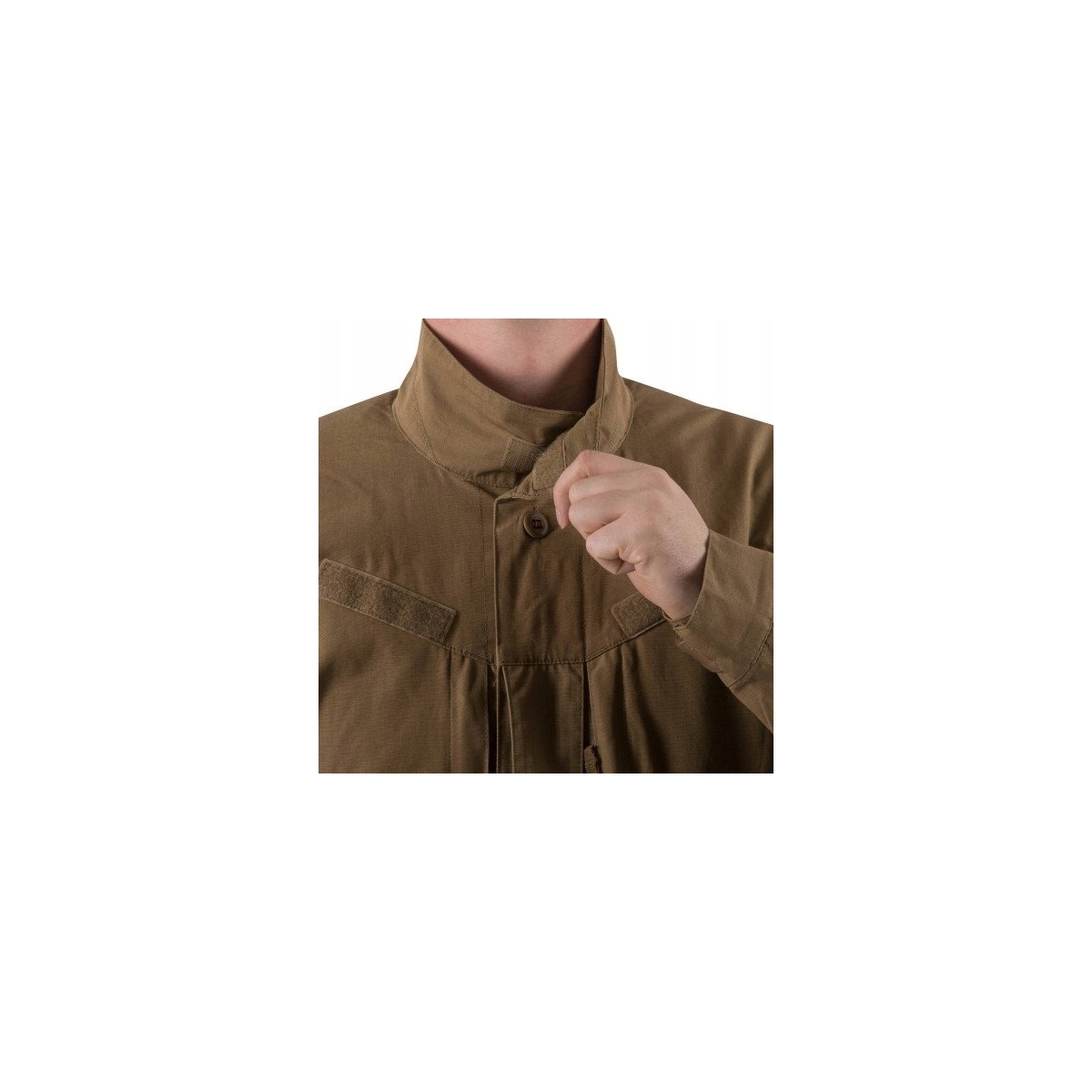 Na ramionach znajdują się również duże panele Velcro na naszywki oraz mniejsze panele nad nimi, przeznaczone na flagę lub oznaczenie IFF. Dla większej wytrzymałości zastosowano tzw. guziki kanadyjskie.