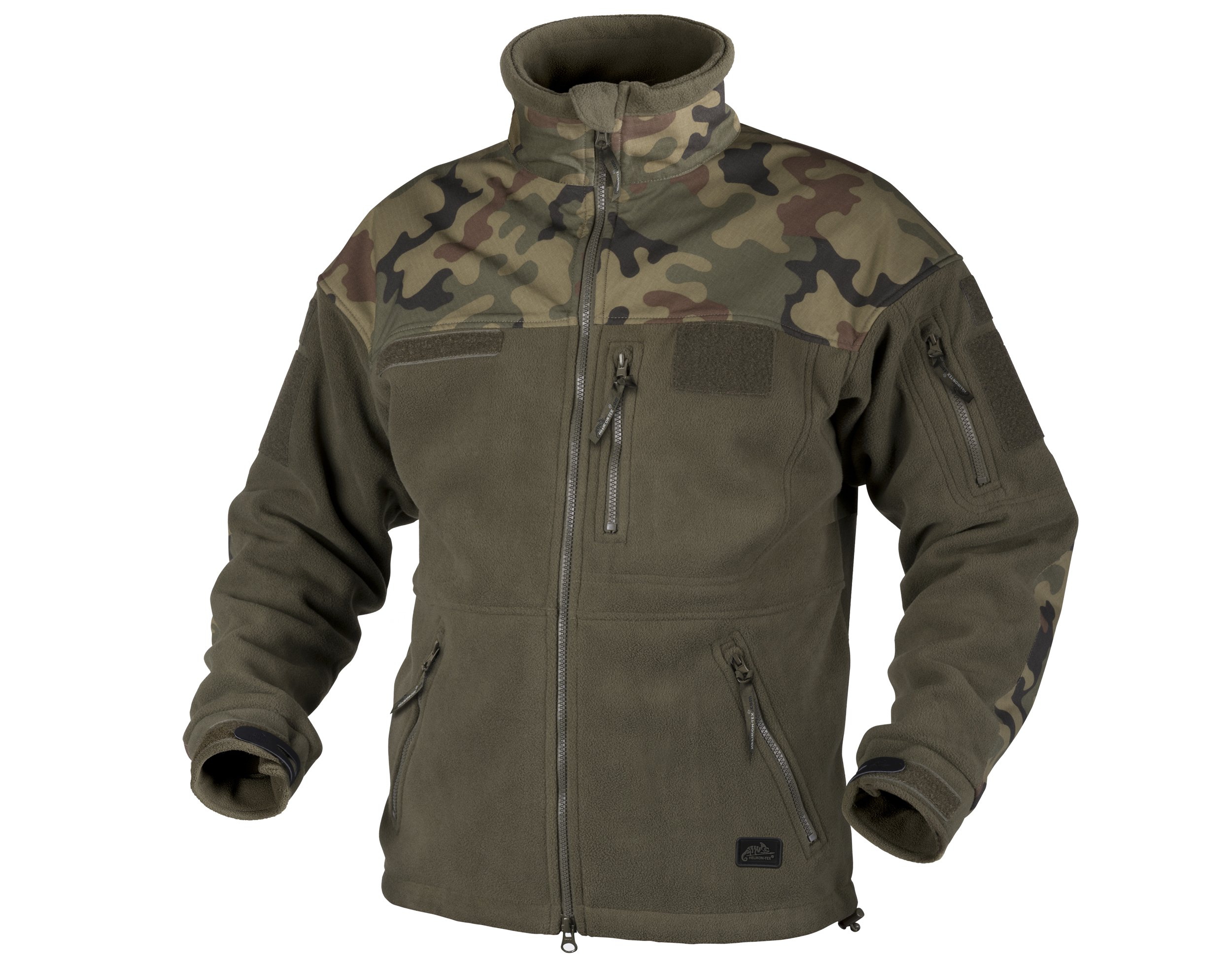 Polar HELIKON INFANTRY - to ciepły, miękki polar zaprojektowany specjalnie dla żołnierzy jako cieplejsza warstwa wierzchnia, wykonany z podwójnego polaru o gramaturze 330g/m2. Prosty i luźny krój bluzy sprawia, że kurtka jest wygodna w noszeniu. Krój bluzy pozwala na ubranie dodatkowej warstwy ubrań na zimne dni. Bluza zapinana jest na zamek błyskawiczny i zawiera 4 kieszenie na podstawowy ekwipunek, co czyni z kurtkę bardzo funkcjonalną, dodatkowo posiada opcję łatwej personalizacji dzięki velcro na ramionach i piersi. Ramiona zostały wzmocnione dla dodatkowej ochrony przed przetarciami. Wszystkie te cechy sprawiają, że Infantry to funkcjonalny polar do noszenia w chłodnie dni w jednostce jak i w terenie. Kolor bluzy: olive-woodland PL.