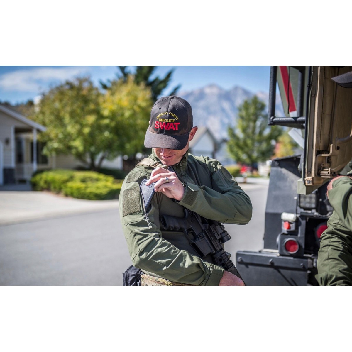 Bluza Helikon COMBAT SHIRT - Bluza bojowa przystosowana do noszenia z kamizelkami taktycznymi, plate carrierami czy chest rigami. Rękawy oraz kołnierz ze stójką wykonane zostały z wytrzymałej tkaniny NyCo, natomiast korpus z lekkiej, oddychającej dzianiny TopCool. Na obu ramionach znajdują się podwójne panele velcro (rzepy) umożliwiające łatwą personalizację za pomocą odpowiednik emblematów, np. flagi państwowej bądź drużyny, składu. Rękawy posiadają zapinane na zamek kieszenie, dzięki którym można bezpiecznie przenosić niezbędne drobiazgi.