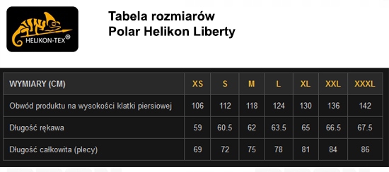 Polar HELIKON LIBERTY - to bojowa bluza polarowa, dostosowana do użytku w trudnych warunkach i niskiej temperaturze. Specjalny materiał - podwójny polar o dużej gęstości 390g/m2 stanowi doskonałą izolację przed zimnem, umożliwiając jednocześnie odprowadzenie nadmiaru wilgoci na zewnątrz, dzięki czemu skóra oddycha i nie poci się.