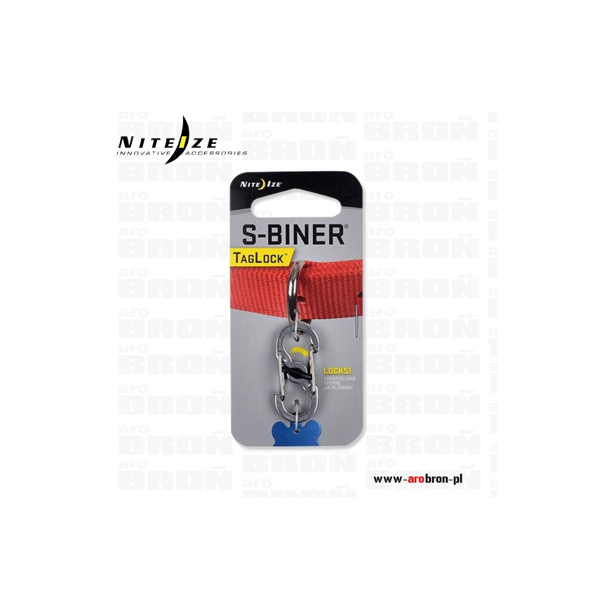 Karabińczyk Nite Ize S-Biner TagLock Stalowy PLSBM-11-R3 - blokada zamknięcia, do mocowania identyfikatora do obroży, uprzęży