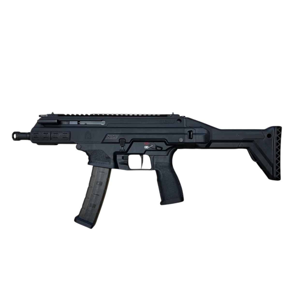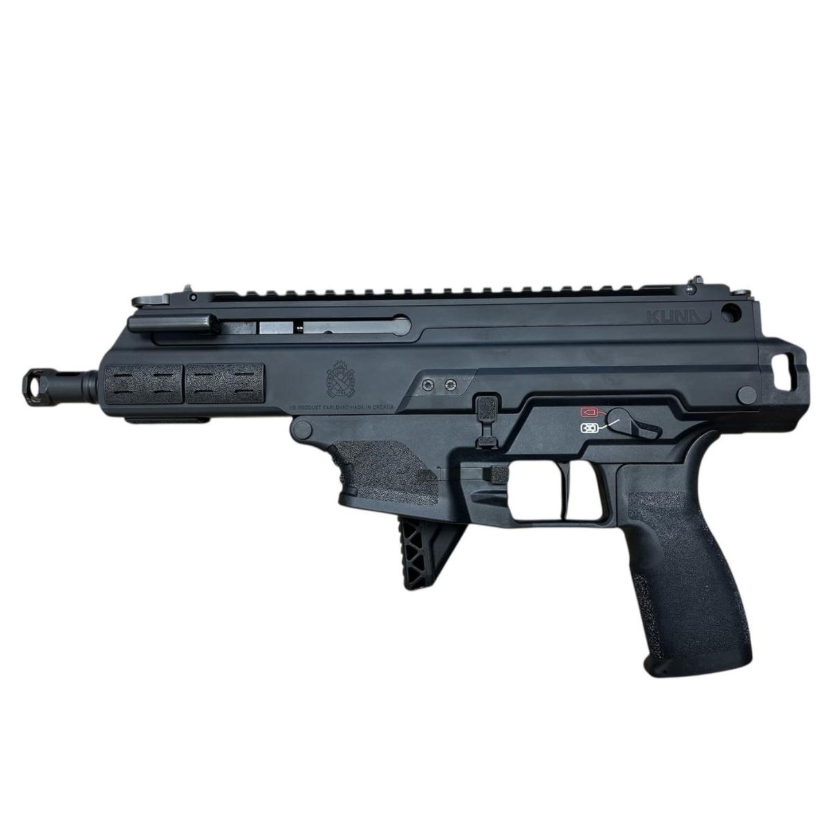 Pełna obustronność (Ambi): HS Produkt zaprojektował Kunę z myślą o każdym strzelcu. Bezpiecznik, zrzut zamka i zrzut magazynka są dostępne z obu stron. Dźwignia przeładowania jest nieruchoma podczas strzelania (non-reciprocating) i można ją przełożyć na lewą lub prawą stronę.