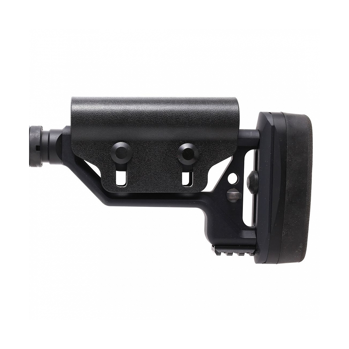- Kolba i ergonomia: Aluminiowa kolba z regulowanym policzkiem i możliwością dopasowania długości zwiększa komfort strzelania. Kolba jest również wyposażona w szynę Picatinny, umożliwiającą montaż dodatkowych akcesoriów, jak monopod.