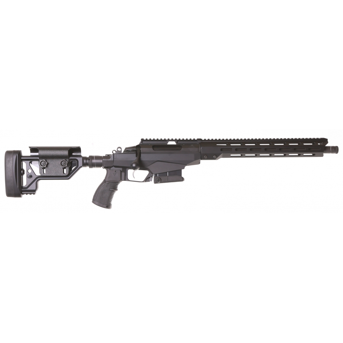 Modułowe osadzanie (Chassis): Aluminiowe łoże w systemie M-LOK (13.5") pozwala na dowolną konfigurację akcesoriów (bipody, lasery, wskaźniki). Szyna Picatinny na całej długości komory i łoża (Full Length) umożliwia montaż optyki wraz z przystawkami noktowizyjnymi.