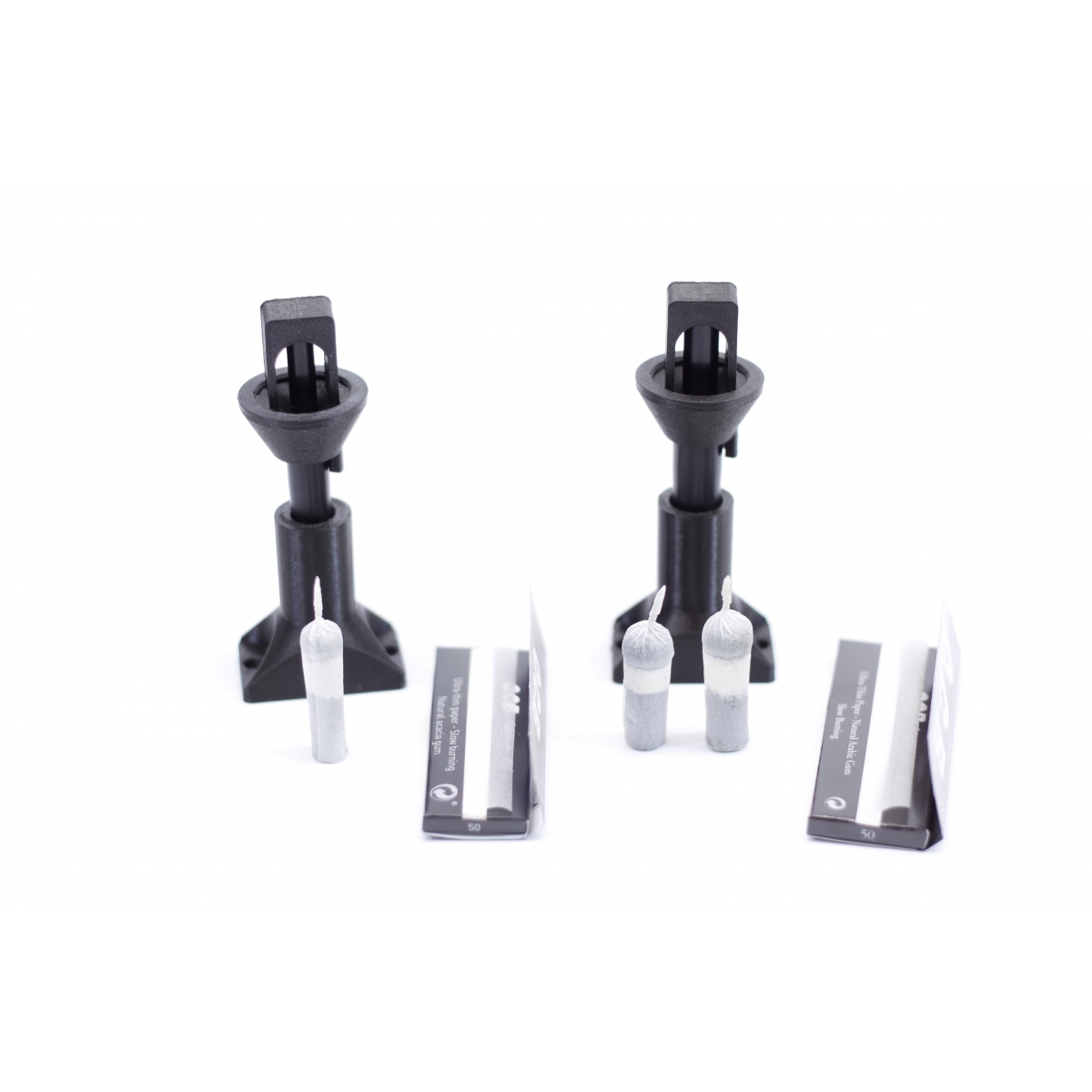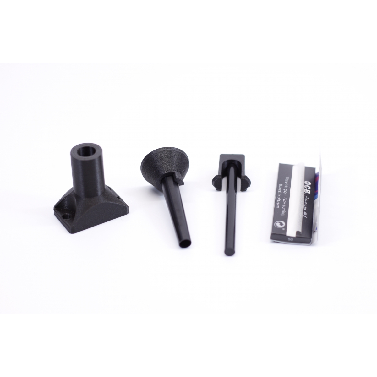 CARTRIDGE MAKER BP - przyrząd ułatwiający i przyspieszający proces przygotowanie ładunków do broni czarnoprochowej o kalibrze .36 . Całość poza śrubą łączącą podstawę z matrycą wykonano z tworzywa sztucznego. Wykorzystuje starą technikę wytwarzania ładunków papierowych zdecydowanie ją uproszczając. Oszczędza czas strzelca podczas przygotowywania ładunków prochowych.