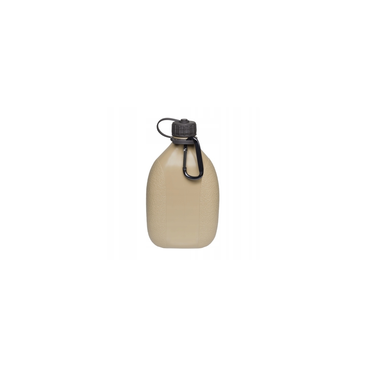 Zastosowany materiał nie zmienia smaku wody oraz nie reaguje z innymi płynami. Zamykany za pomocą szerokiej nakrętki przymocowanej do szyjki, możliwość przymocowania dołączonym karanińczykiem.