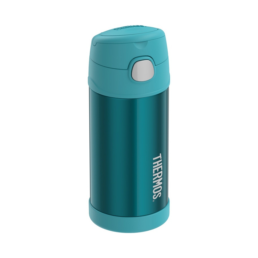 Termos Thermos FunTAINER dziecięcy 355ml turkusowy to termos wyprodukowany przez wiodącego producenta, który jako pierwszy w 1904 roku użył technologii próżniowej w produktach komercyjnych. Należy do linii produktów skierowanych do dzieci.