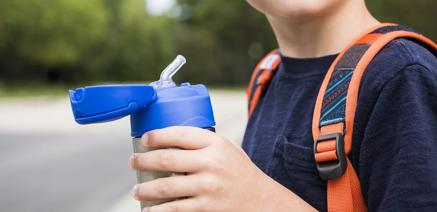 Specjalnie zaprojektowana zakrętka pozwala na bezpiecznie użytkowanie przez dzieci bez ryzyka wylania czy oblania się napojem. Otwarcie nakrętki odbywa się za pomocą przycisku, pod którą kryje się ustnik słomki.