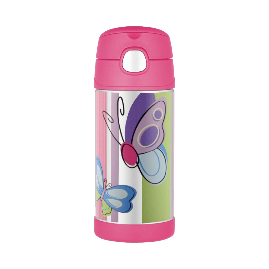 Termos Thermos FunTAINER dziecięcy 355ml motyl to termos wyprodukowany przez wiodącego producenta, który jako pierwszy w 1904 roku użył technologii próżniowej w produktach komercyjnych. Należy do linii produktów skierowanych do dzieci.