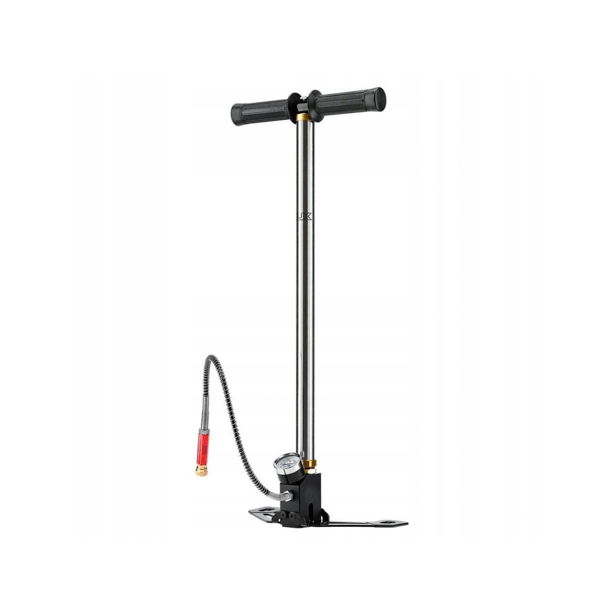 Pompka ręczna spręża powietrze do ciśnienia 300 barów, które jest wtłaczane do kartusza wiatrówka za pomocą węża wążyka wysokociśnieniowego i adaptera. Poziom cisnienia można kontrolować na zintegrowanym manometrze z oznaczeniami w jednostkach Bar i PSI. W korpisie pompki znajduje się osuszacz, który usuwa wilgoć z powietrza wtłaczanego do kartusza wiatrówki, chroniąc w ten sposób przed korozją