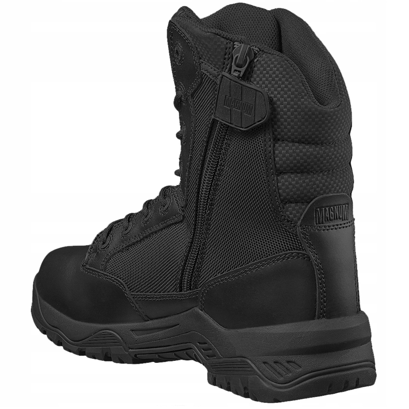 Buty MagnumStrike Force 8.0 - zostały zaprojektowane z myślą o służbach mundurowych, pracownikach ochrony i pasjonatach militariów. Model ten posiada boczny zamek YKK, który znacznie przyspiesza proces zakładania i zdejmowania obuwia. Zamek został zabezpieczony od spodu przed przedostawaniem się wody do środka.