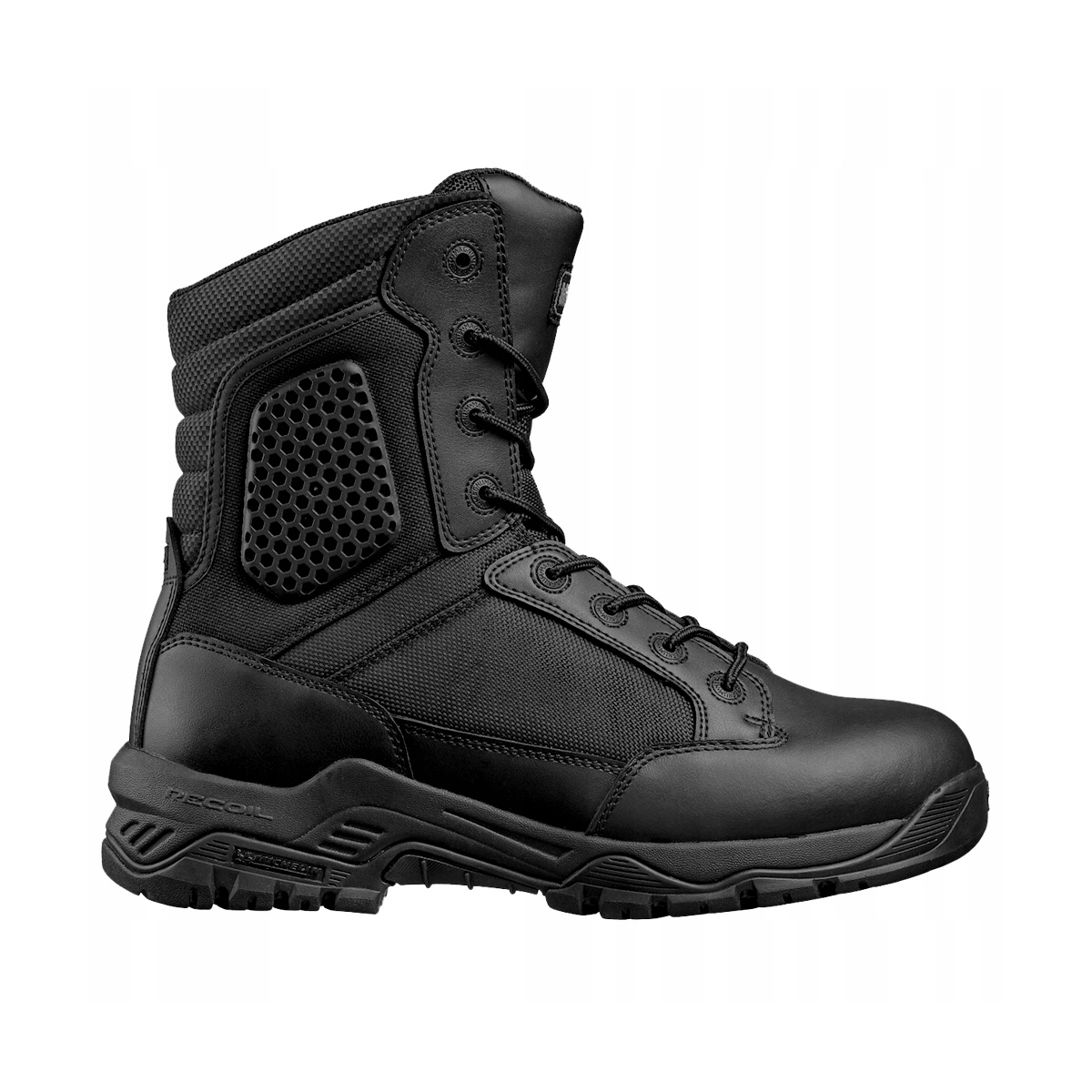 Buty MagnumStrike Force 8.0 - zostały zaprojektowane z myślą o służbach mundurowych, pracownikach ochrony i pasjonatach militariów. Model ten posiada boczny zamek YKK, który znacznie przyspiesza proces zakładania i zdejmowania obuwia. Zamek został zabezpieczony od spodu przed przedostawaniem się wody do środka.