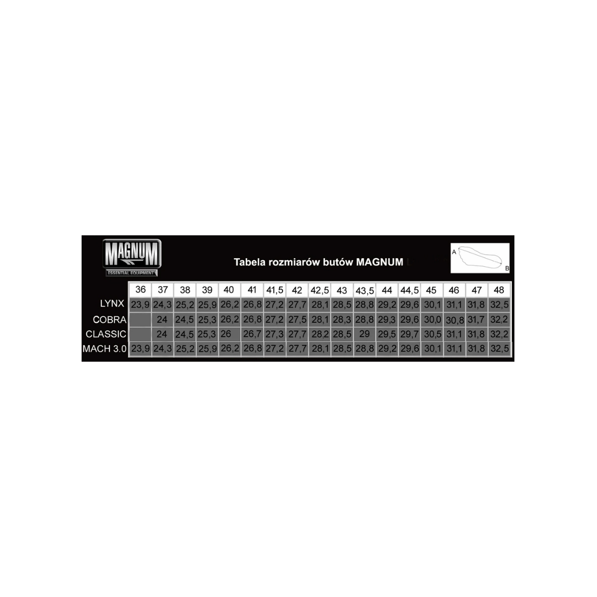 Tabela rozmiarów: