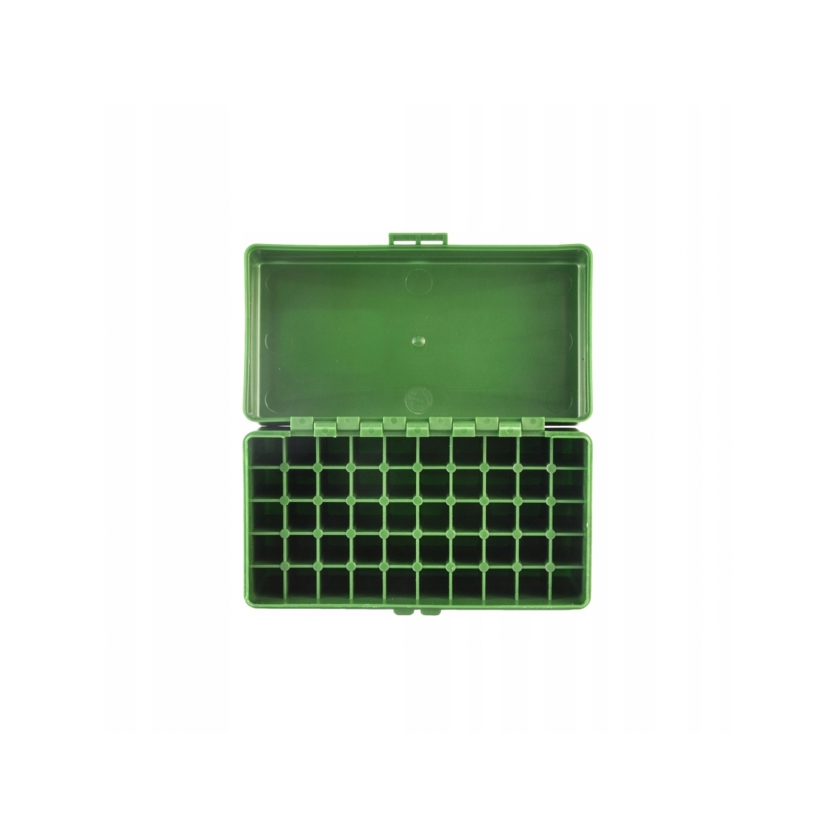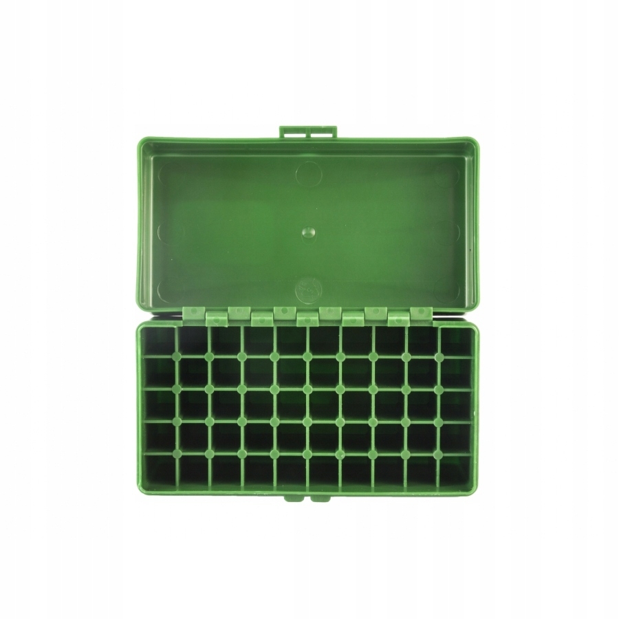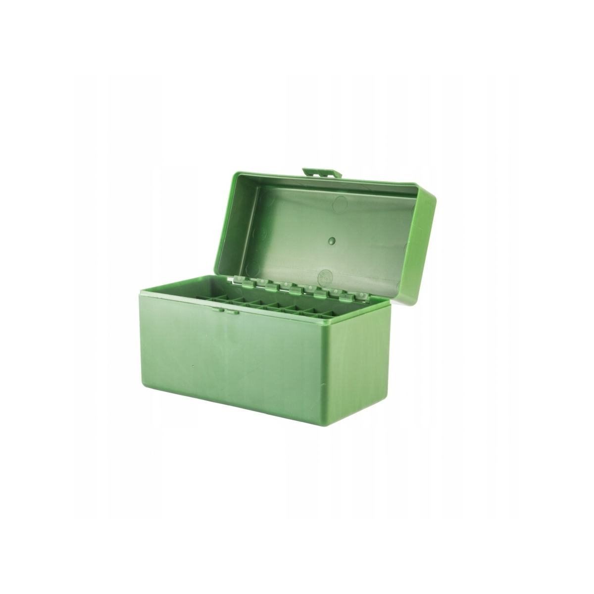 Pudełko Megaline na amunicję 30.06-6.5x55/50 - Pudełko na 50 szt naboi karabinowych/sztucerowych kalibru .6,5x55-30-06. Wykonane z twardego tworzywa sztucznego w kolorze zielonym. Niezbędne przy wypadzie na strzelnicę.