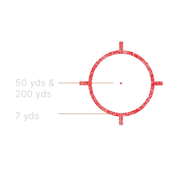 Siatka celownicza: 68 MOA pierścień z centralnym punktem 1 MOA