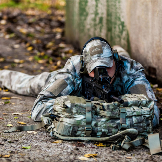 Czapka współpracuje z ochronnikami słuchu oraz innym taktycznym oporządzeniem nagłownym.