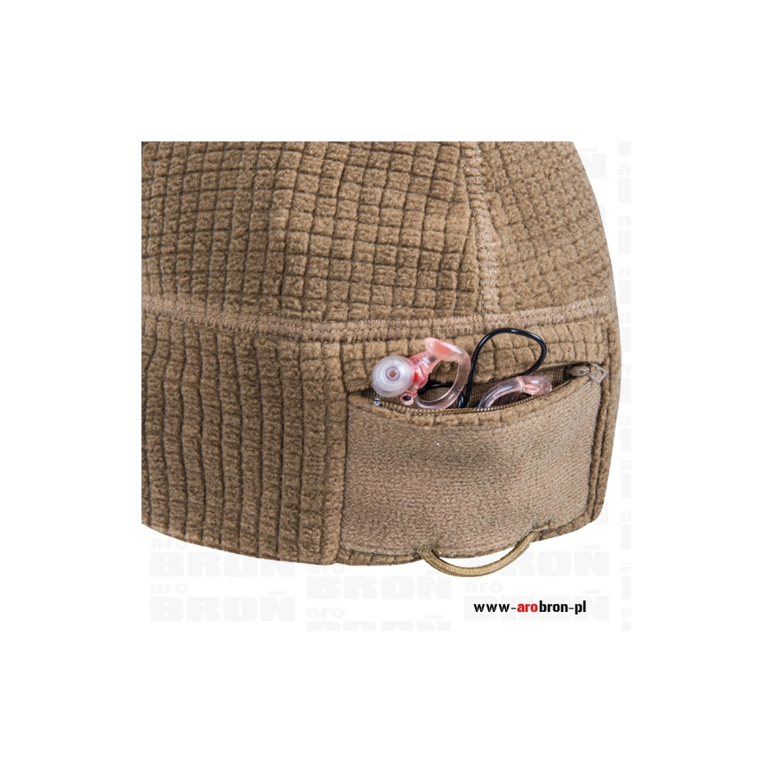 Ciekawym dodatkiem jest mała, umieszczona z tyłu kieszeń, zapinana na zamek YKK. Kieszonka może służyć do przenoszenia zapasowych stoperów czy innych drobnych przedmiotów. Dzięki kompaktowemu rozmiarowi czapkę z łatwością można zmieścić w ładownicy. Przyszyta pod tylnym rzepem pętelka z linki umożliwia powieszenie czapki na karabińczyku.