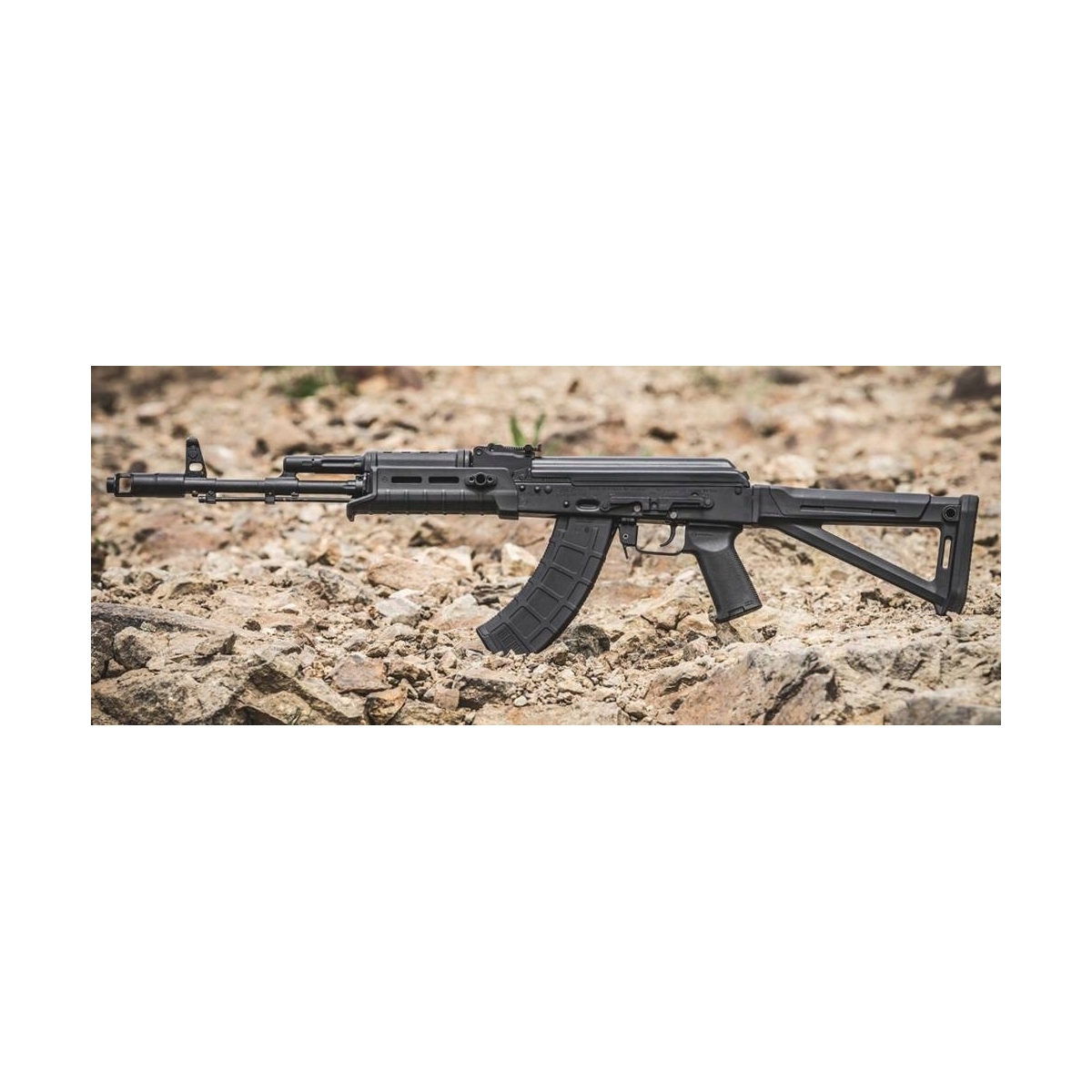- Zoptymalizowany pod kątem karabinków AK47/AKM/AK74 tłoczonych z blachy, z okładzinami drewnianymi lub polimerowymi.