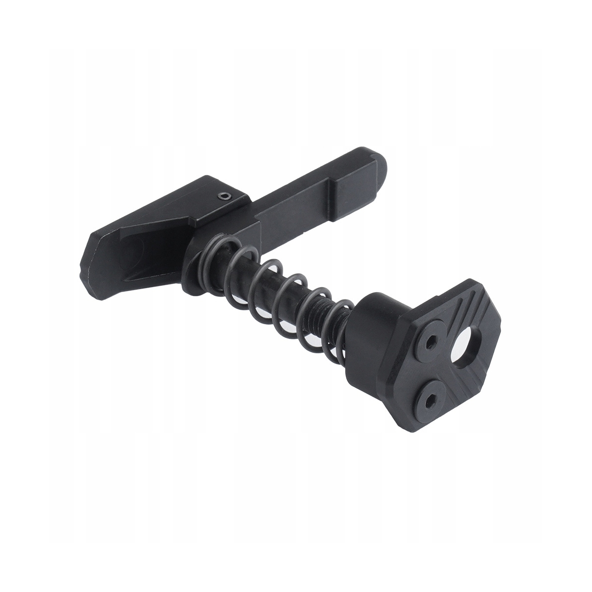 Obustronny zwalniacz magazynka do platformy AR15 wykonany ze stali oraz aluminium. Jego obsługa jest wygodna zarówno w użytku lewo- jak i prawostronnym. Wygodną konstrukcję wyposażono w antypoślizgowe przyciski. Jego instalacja jest łatwa i intuicyjna, tak samo jak użycie.Przycisk można zamontować samodzielnie – producent dołączył do zestawu klucz inbusowy.
