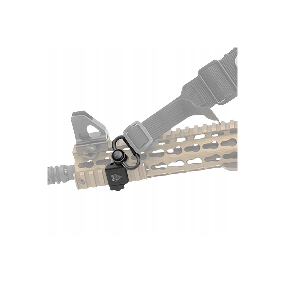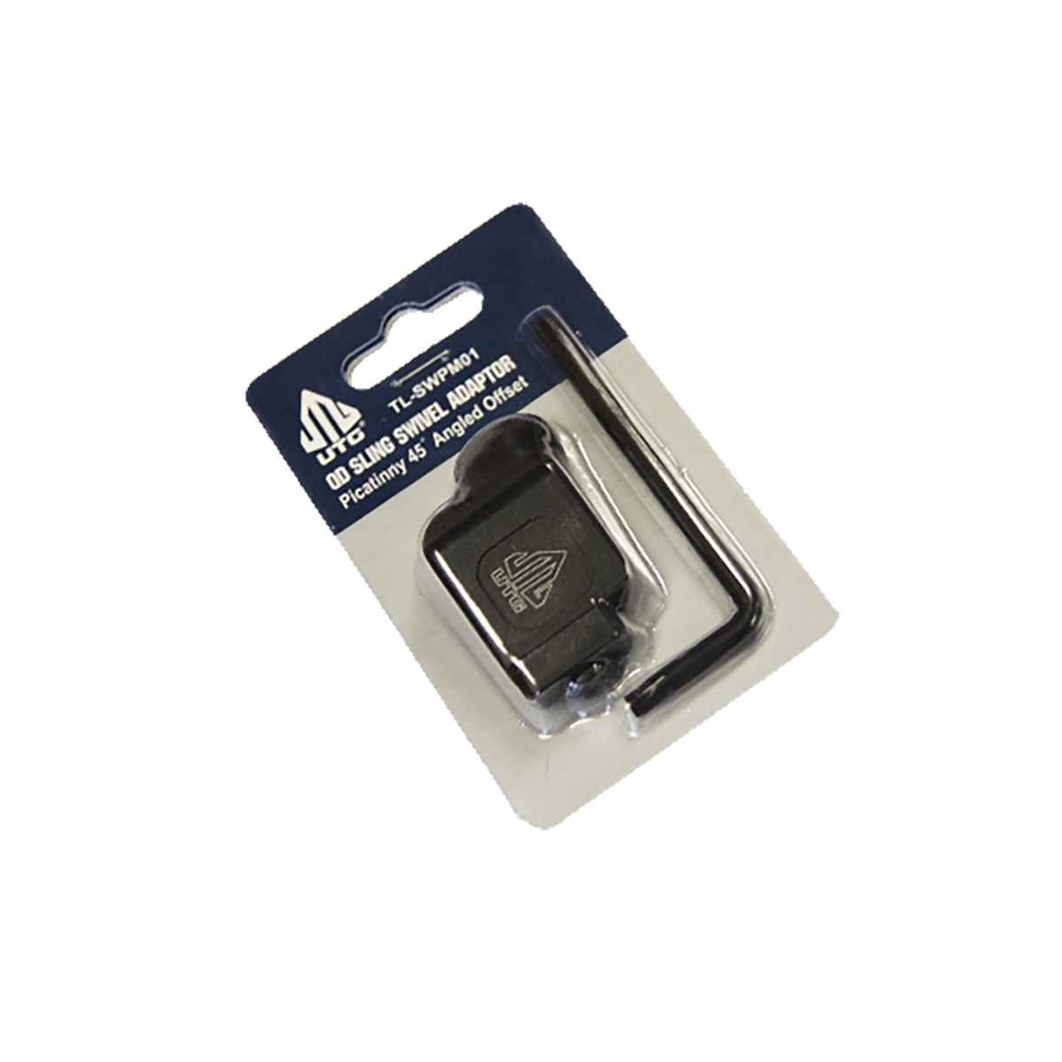 Gniazdo QD, nachylone pod kątem 45°. Przeznaczone do montażu na szynach Picatinny, kompaktowe i niskoprofilowe. Kompatybilne z uchwytami do pasa nośnego QD o średnicy 35 mm. Adapter może zostać zamontowany zarówno po lewej, jak i prawej stronie szyny. Umożliwia obracanie się uchwytu w zakresie 90°. Blokada zabezpiecza zawieszenie taktyczne przed okręcaniem się i plątaniem.