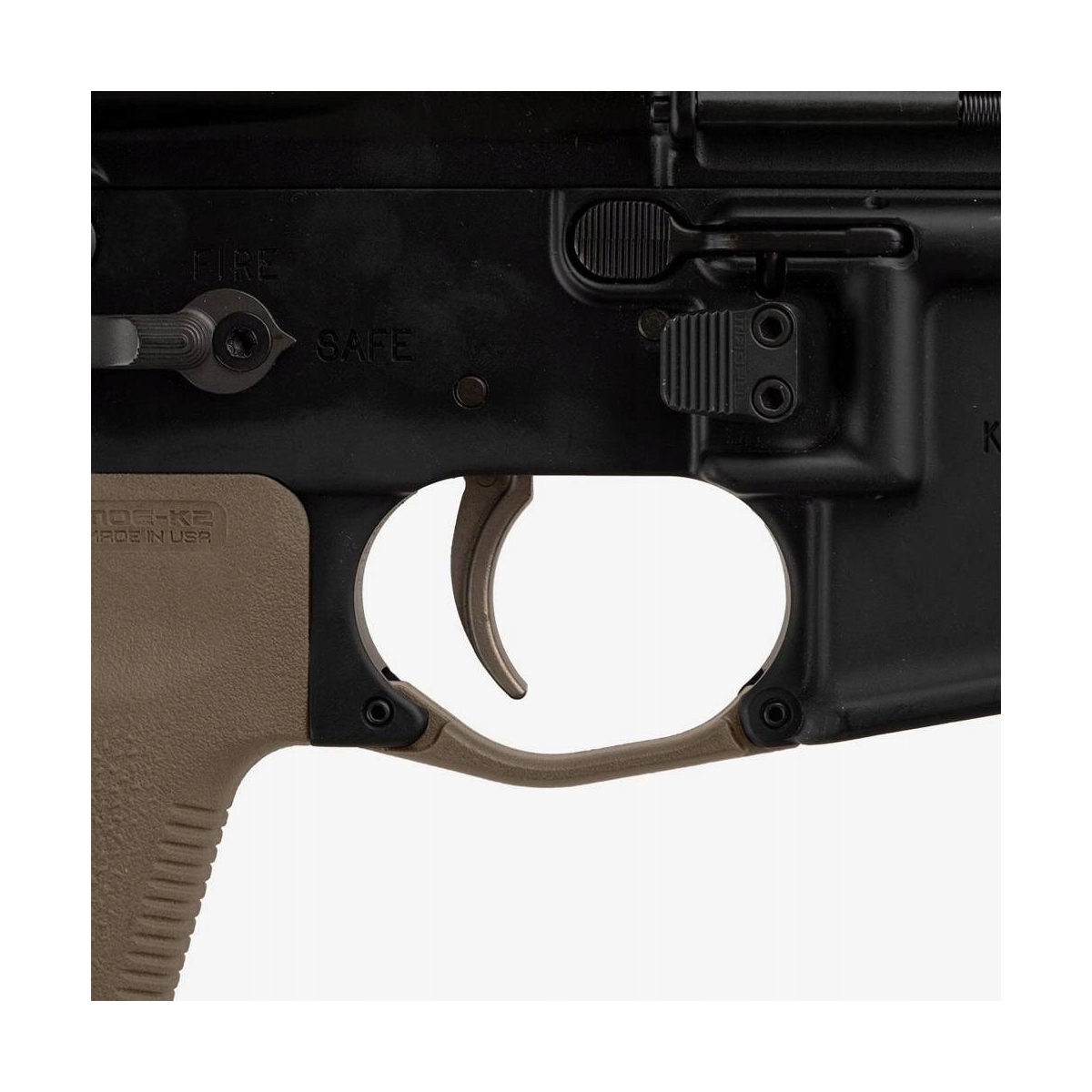 Kabłąk MOE Magpul do AR15/M4 MAG1186-FDE wykonany z lekkiego i odpornego na warunki atmosferyczne polimeru znacząco poprawia komfort obsługi broni również w rękawicach taktycznych i zimowych. Wersja w kolorze FDE (Flat Dark Earth).