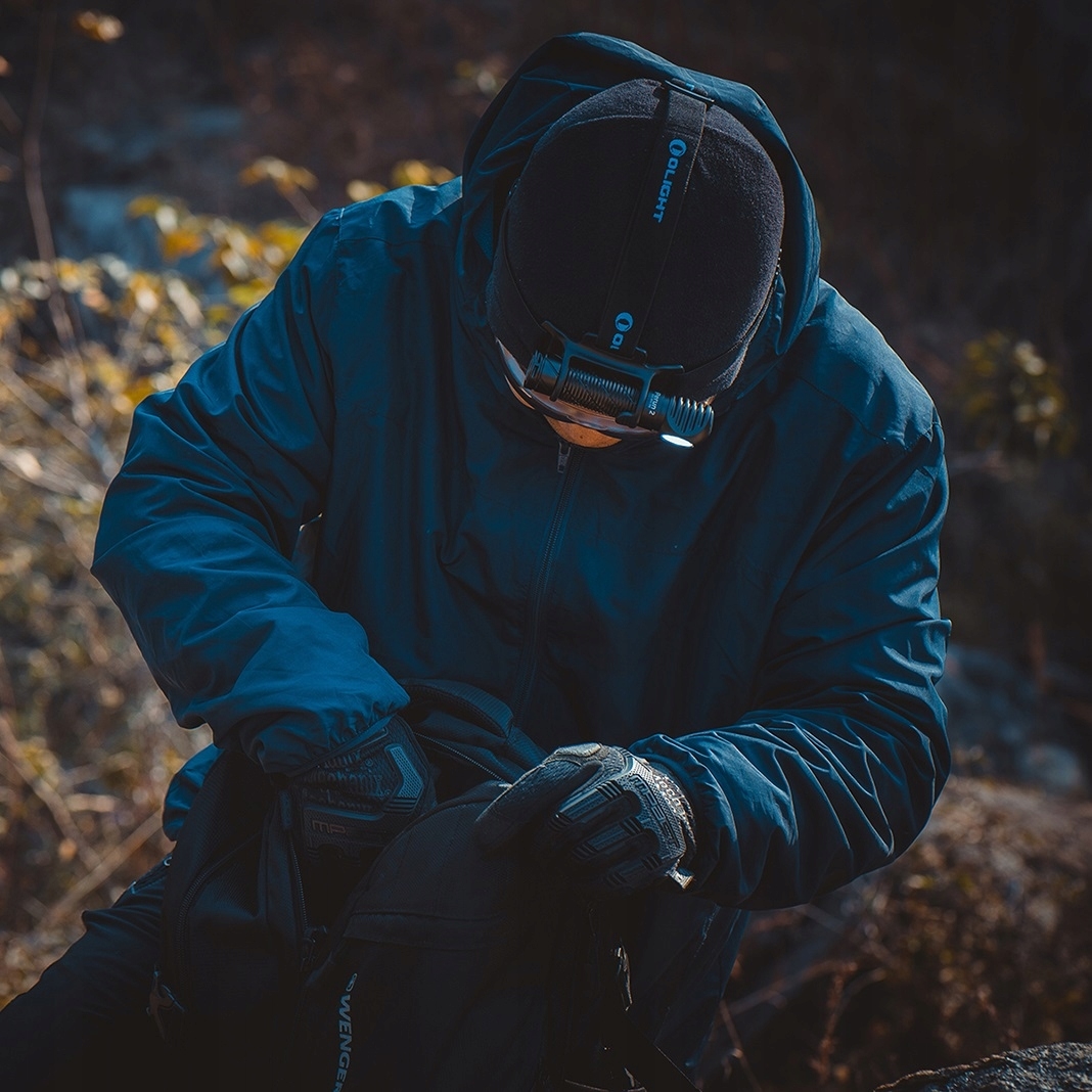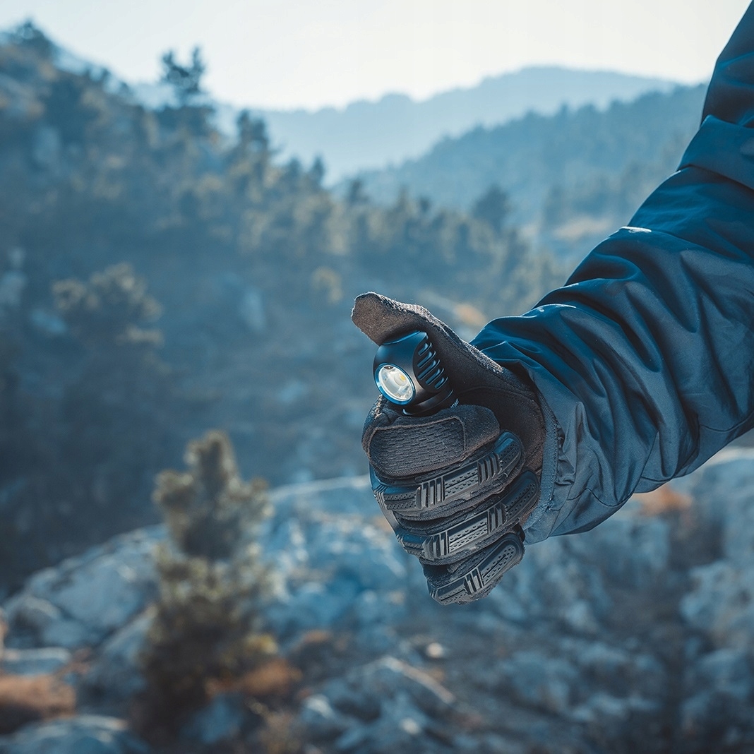 Latarka Olight Perun 2 Cool White Black Kit - jest lekka i wytrzymała. Posiada funkcję latarki kątowej i czołowej. Dioda Cool White LED i optyka PMMA TIR (soczewka/kolimator) zapewnia maksymalny strumień światła na poziomie 2500 lumenów i zasięg do 166 metrów. Latarkę Perun wyposażono w czujnik automatycznie zmniejszający natężenie światła przy oświetlaniu bliskich obiektów. Opaska na głowę z silikonowym uchwytem, daje możliwość przekształcenia latarki z kątowej w czołową i odwrotnie. Wytrzymały korpus o antypoślizgowej fakturze został wykonany z aluminium lotniczego pokrytego twardą anodyzacją typu III.