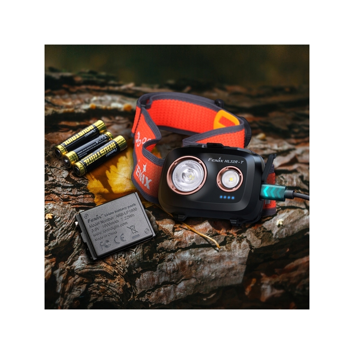 Latarka diodowa czołowa LED FENIX HL32R-T - to lekka czołówka turystyczna o maksymalnym strumieniu 800 lumenów, wyposażona w port ładowania USB-C, podwójny włącznik, regulowaną opaskę Sport Fit System obsługiwaną jedną ręką.
