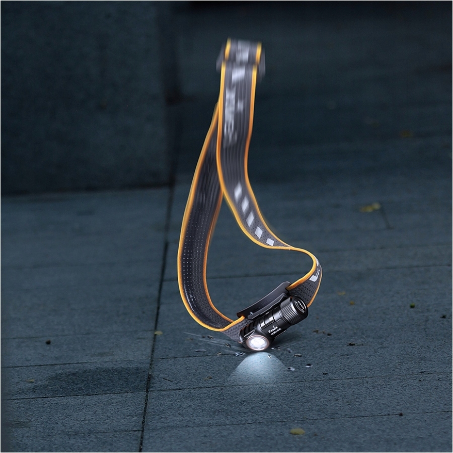 Stabilne przenoszenie latarki na głowie zapewnia zmodernizowana opaska gumowa, odprowadzająca pot oraz wyposażona w odblaskowe wstawki zwiększające naszą widoczność i bezpieczeństwo podczas poruszania się nocą po drodze lub szlaku.