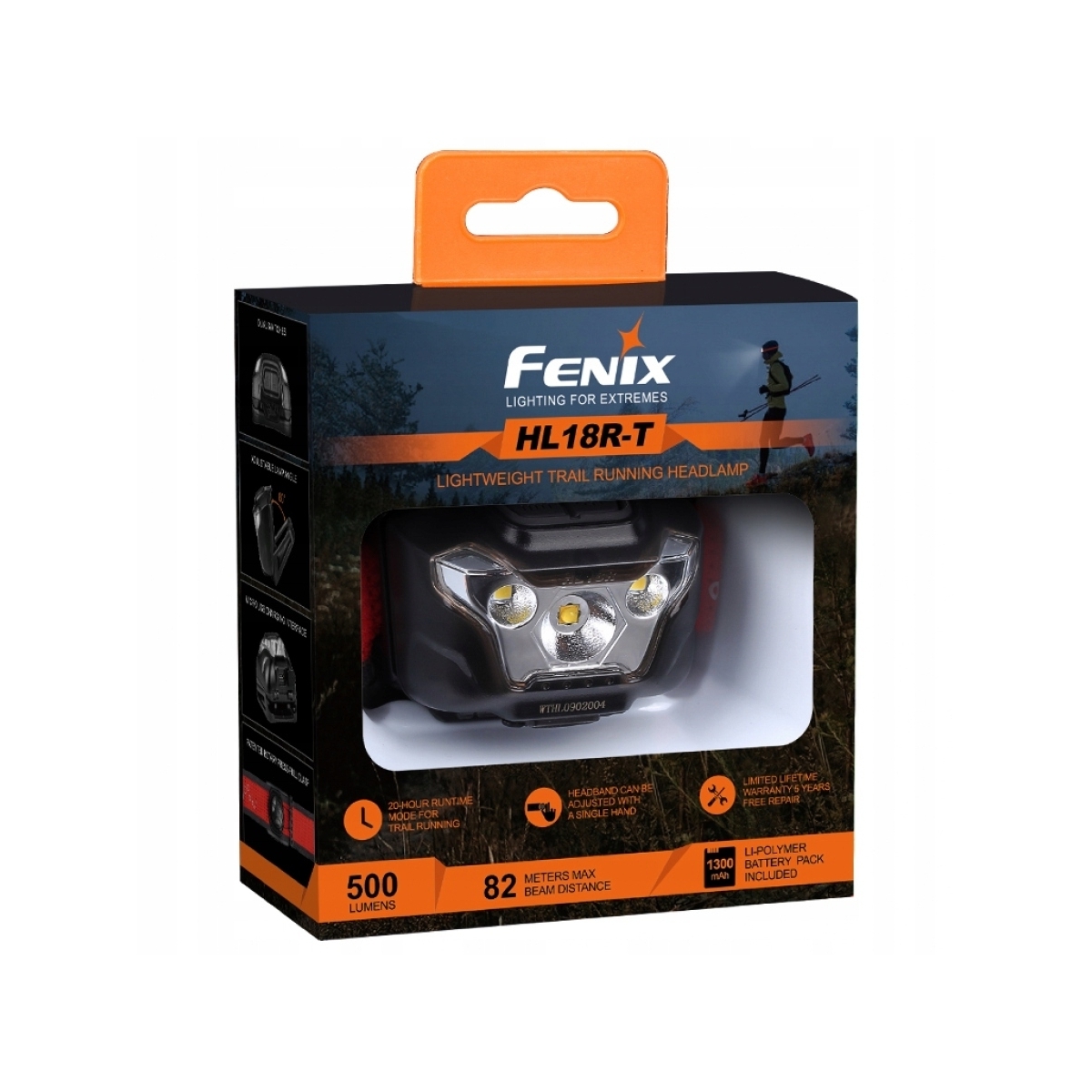 Fenix HL18R-T to lekka czołówka sportowa z możliwością ładowania przez port micro-USB, emitująca 2 rodzaje światła o maksymalnym strumieniu 500 lumenów. Latarka wyposażona w podwójny włącznik, wymienny akumulator o pojemności 1300 mAh oraz regulowaną opaskę Sport Fit System obsługiwaną jedną ręką.