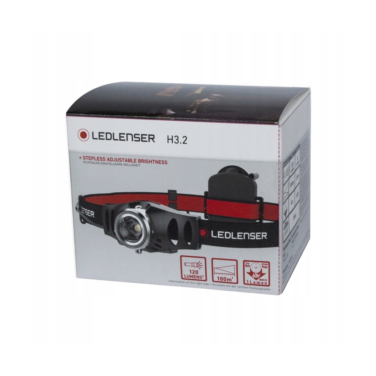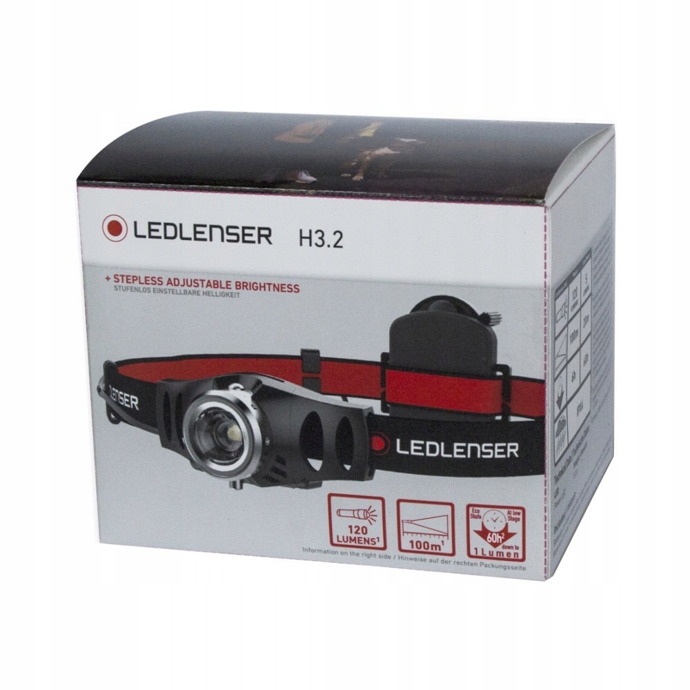 Latarka czołowa LEDLENSER H3.2- latarka czołowa o mocy 120 lumenów niemieckiej firmy Ledlenser. Jej zasięg skuteczny wynosi 100m. Latarka świeci na pełnej mocy do 6h. Idealna precyzja idzie w parze z dużą mocą zastosowanych diod LED.