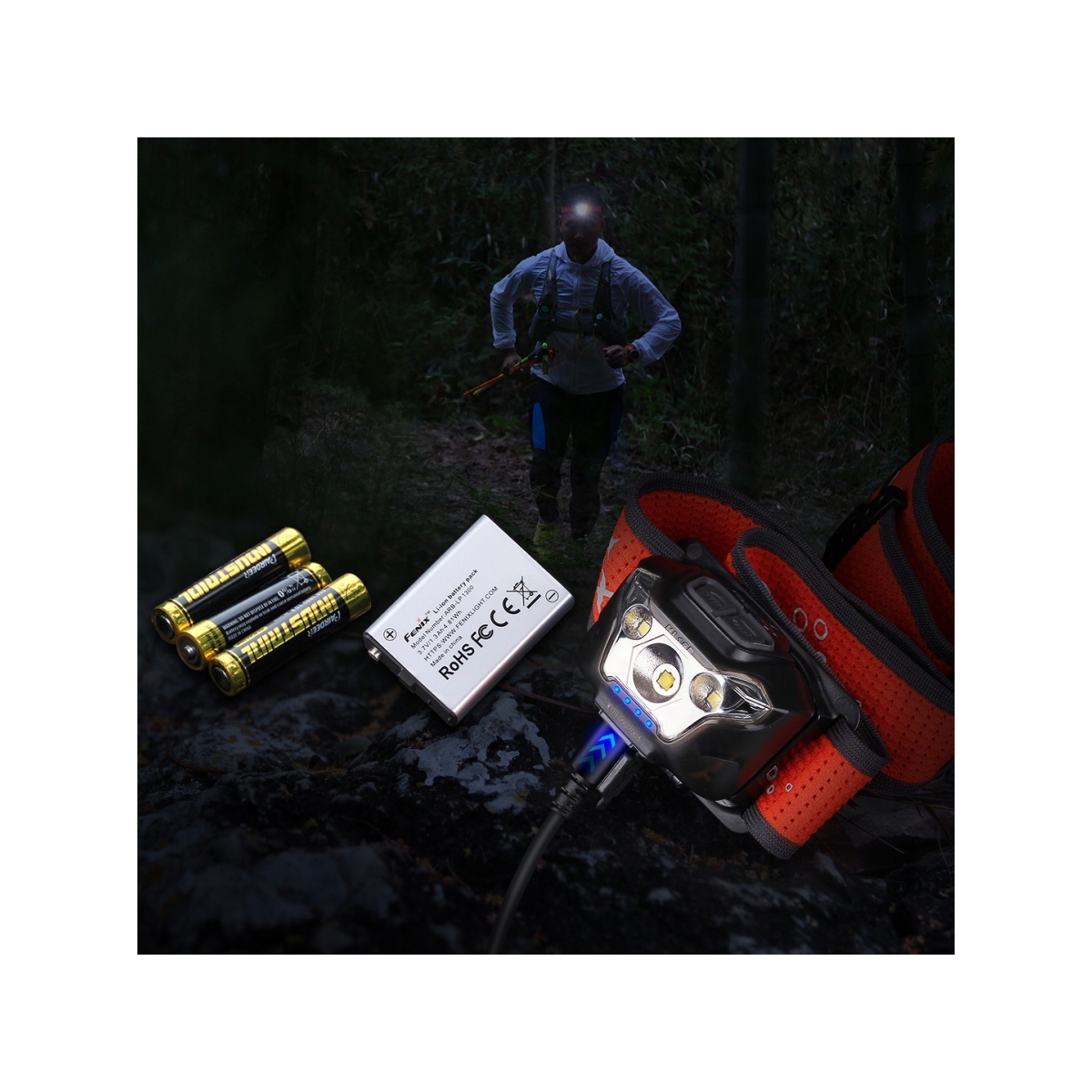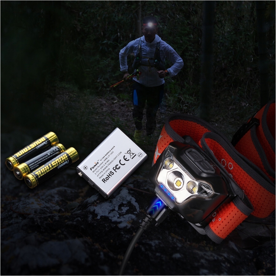 Czołówka Fenix HL18R-T jest zasilana akumulatorem litowo-polimerowym o pojemności 1300 mAh, który pozwala wydajnie świecić latarce do 3 godzin w trybie turbo (500 lumenów).