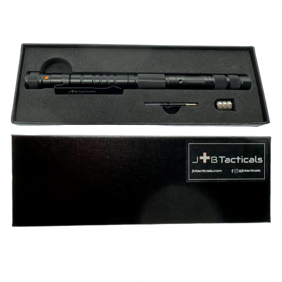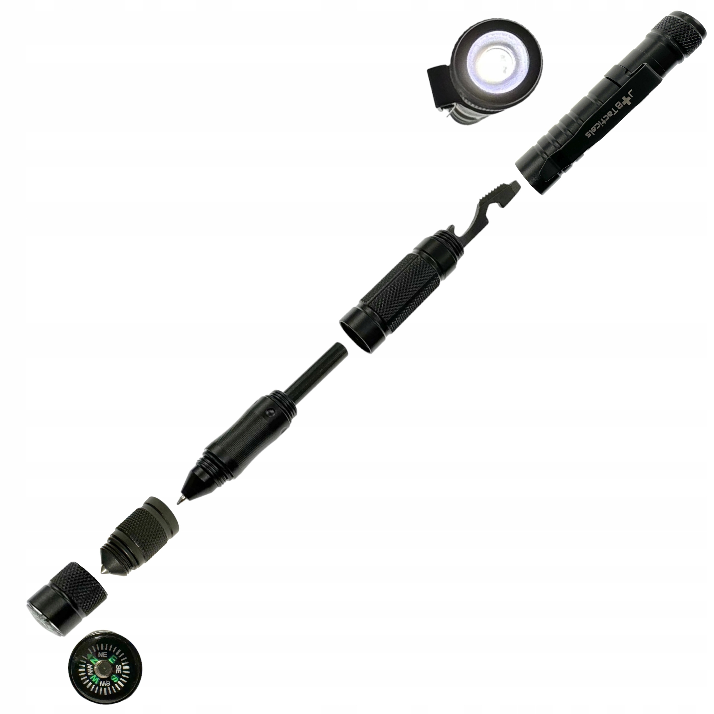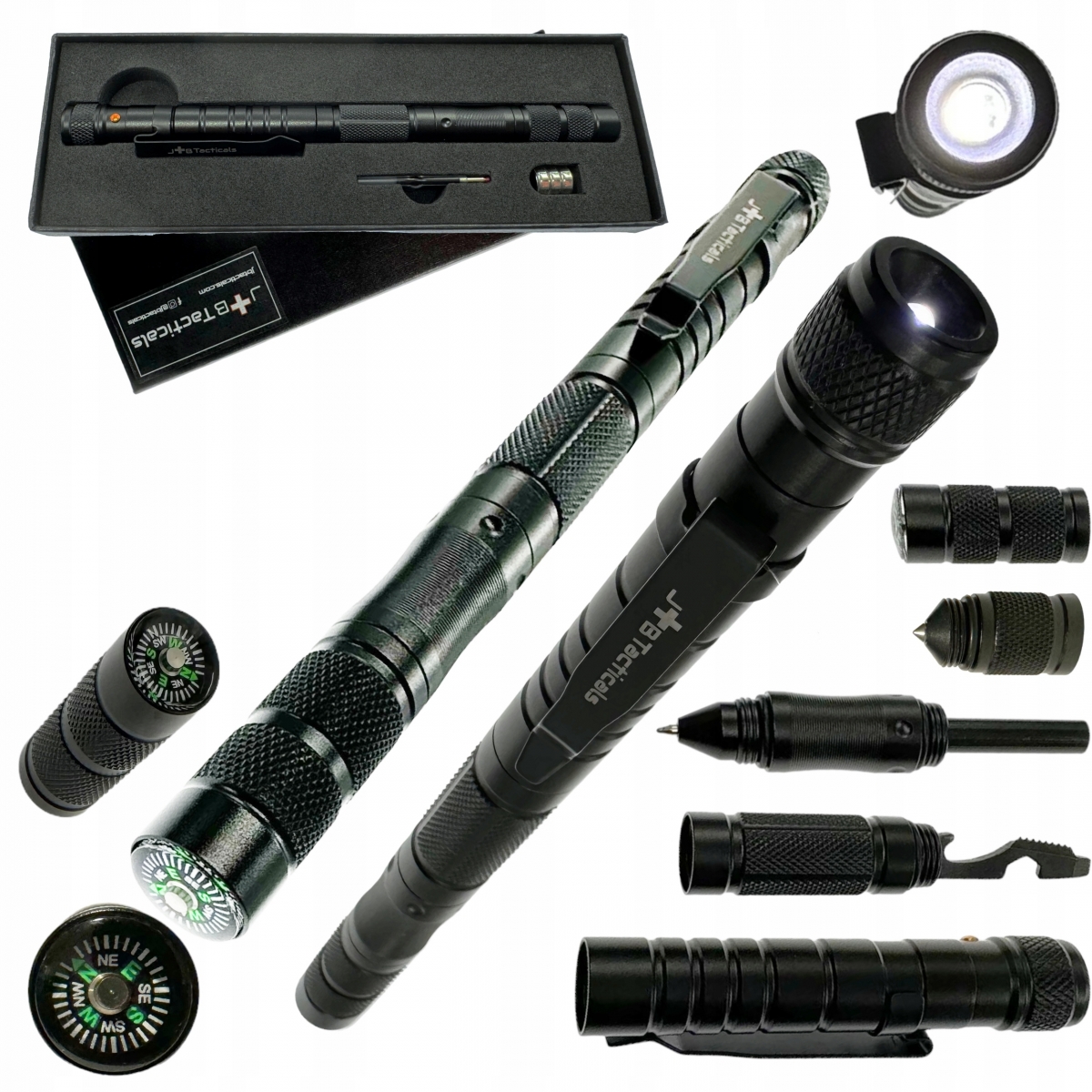 JB Tacticals Czarny Długopis taktyczny z latarką kubotan 10w1 Zestaw kompas