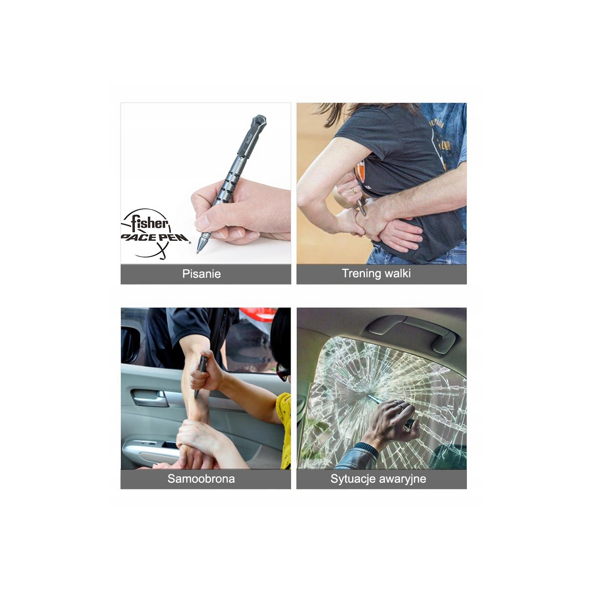 - Wyposażony we wkład Fisher Space Pen pozwalający na pisanie nawet w kosmosie, na wszystkich powierzchniach także mokrych, niezależnie od temperatury powietrza.
