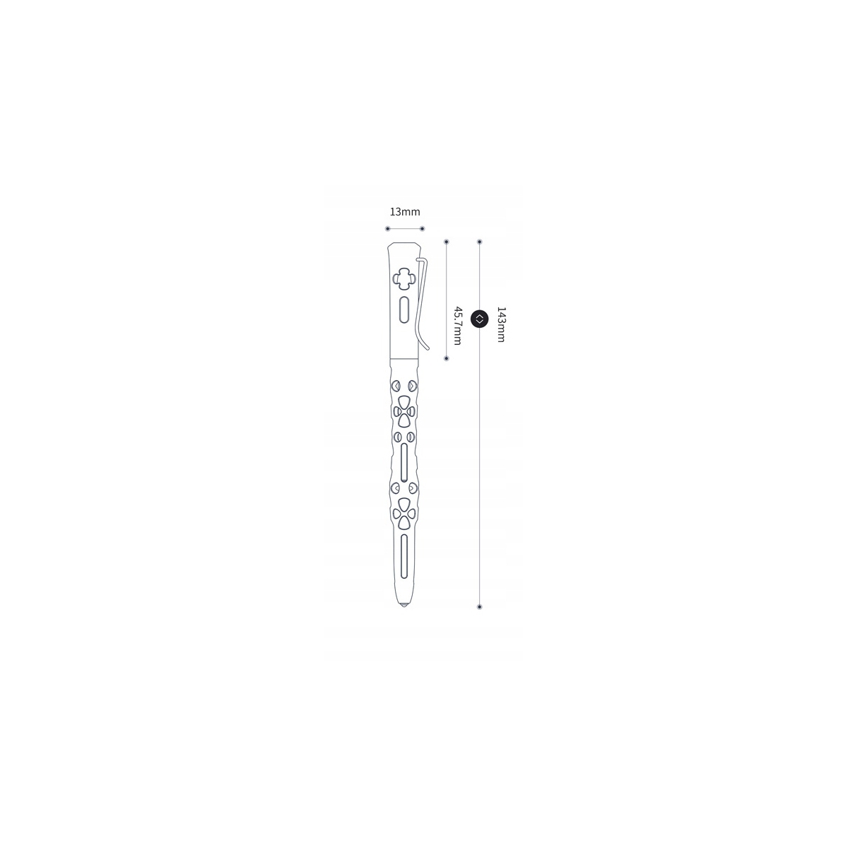 Długopis wykonany został z aluminium lotniczego 6061-T6 pokrytego twardą militarną anodyzacją. Specjalne żebrowanie zmniejsza wagę oraz poprawia sztywność konstrukcji. Kształt oraz długość długopisu pozwala na użycie go do samoobrony jako kubotanu. Wyposażony został na jednym z końców w zbijak do szyb wykonany ze stali wolframowej o twardości zbliżonej do diamentu.